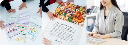 県内JAの組合員や利用者の相続や資産に関するお悩みをJA・士業者と連携しながら解決する、「資産・相続相談業務」がどうすればより活発なものになるか、より良いものになるかを考えることが担当業務です。まだまだ、聞き馴染みの無い業務なので、「この業務に取り組むことでどういったメリットがあるのか」を主にJAに説明するための資料を作成したり、根拠を収集したりしています。例えば、JAに相続に関するご相談を寄せていただいた組合員やその次世代層と相談の後、どのような取引があったかなどを取りまとめたりしています。